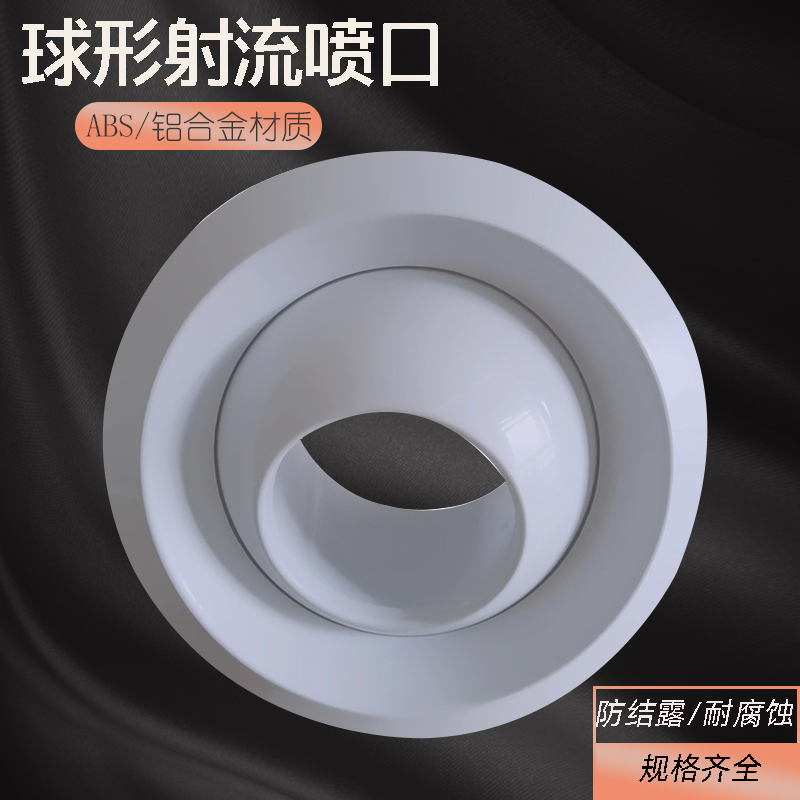 球形噴口可以分為氣動或電動的控制系統。由于采用空氣動力學噴口結構設計,達到了理想的噪聲的控制,又由于它的高品質的外形設計,可用于音樂廳、劇場、博物館等高級場所普通開關型:增加6組鋁合金葉片,通過手動調節葉片來調節風量大小電動執行機構型:220v電動控制調節葉片來調節風量大小溫控型(溫感型):溫感球型遠程噴口頸部裝有溫感執行器,能自動感測到氣流溫度,并自動驅動內層噴口以改變送風角度。當夏季送風溫度≤17℃時,噴口氣流呈水平吹出;當冬季送風溫度≥27℃時,噴口氣流呈斜下方向吹出。可滿足冬夏季不同工況下的送風要求。溫感執行器無需人工或電源及電控設備,具有節能、環保、性能穩定、安裝簡便、免維護等優點。