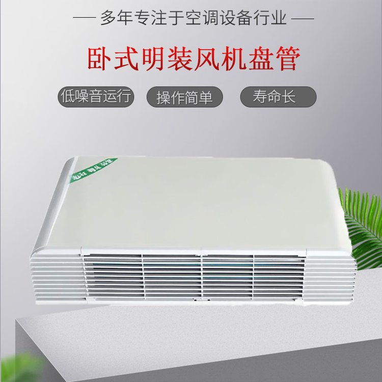 臥式明裝風(fēng)機(jī)盤管機(jī)組主要由風(fēng)機(jī)、熱交換器(盤管)、凝水盤、殼體及控制器組成,它適用于集中式空調(diào)系統(tǒng)。設(shè)計(jì)先進(jìn)、品種齊全、性能優(yōu)越,用途廣泛,通常用于要求噪聲小,溫度調(diào)節(jié)靈活的各種賓館、公寓、飯店、醫(yī)院、商業(yè)大樓等。